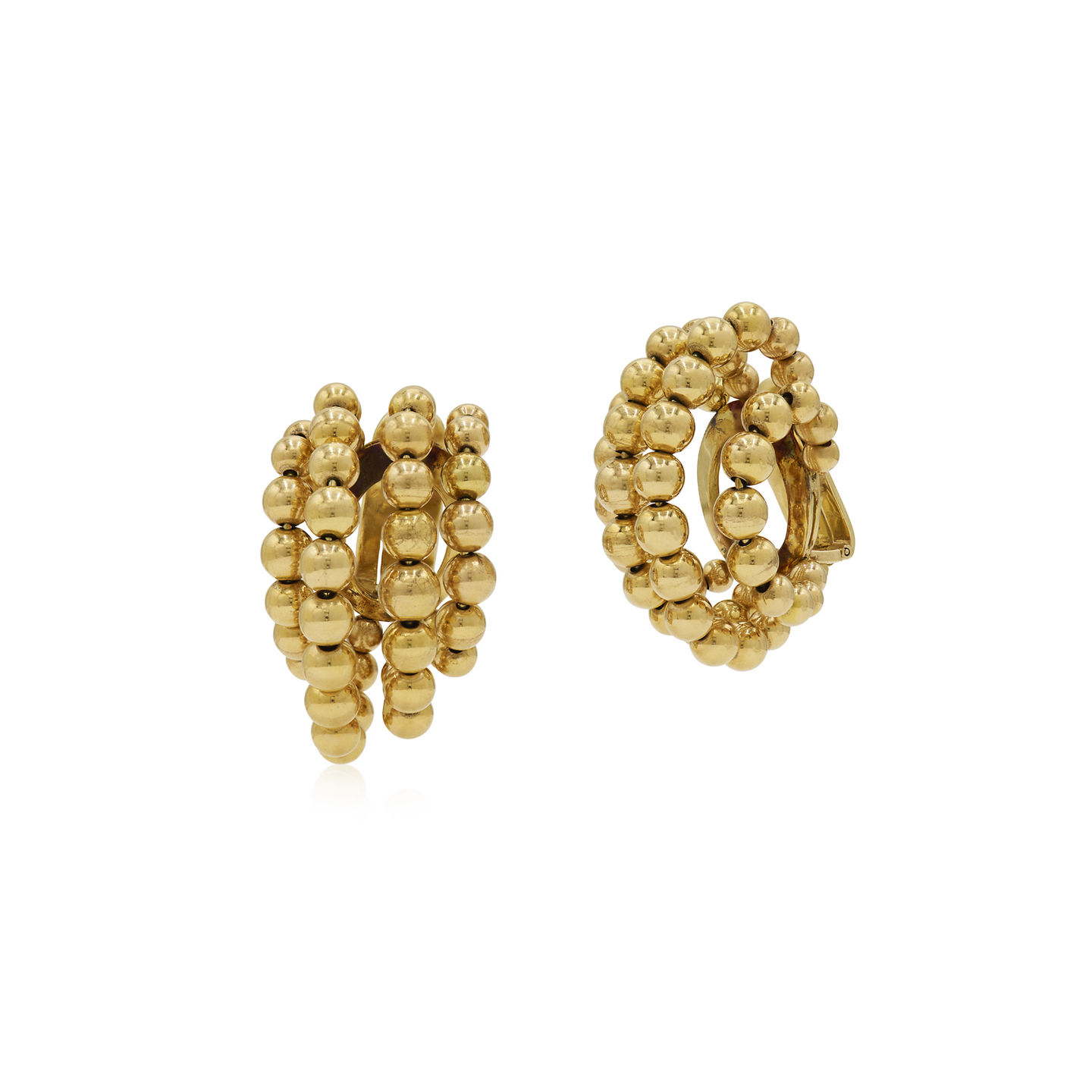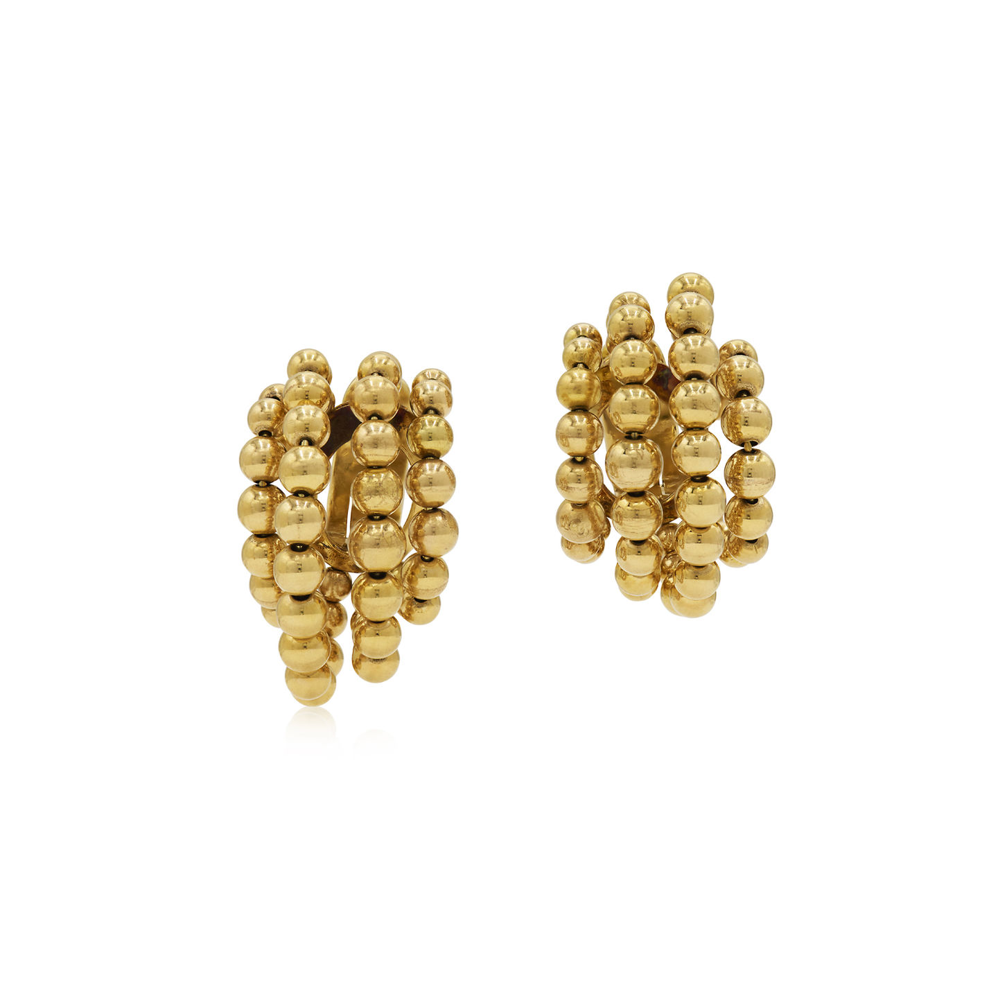Home | shop | Earrings | On Ear | 14K Yellow Gold Bead 4 Row Earrings by Cartier, circa 1950s, Serial FL40351