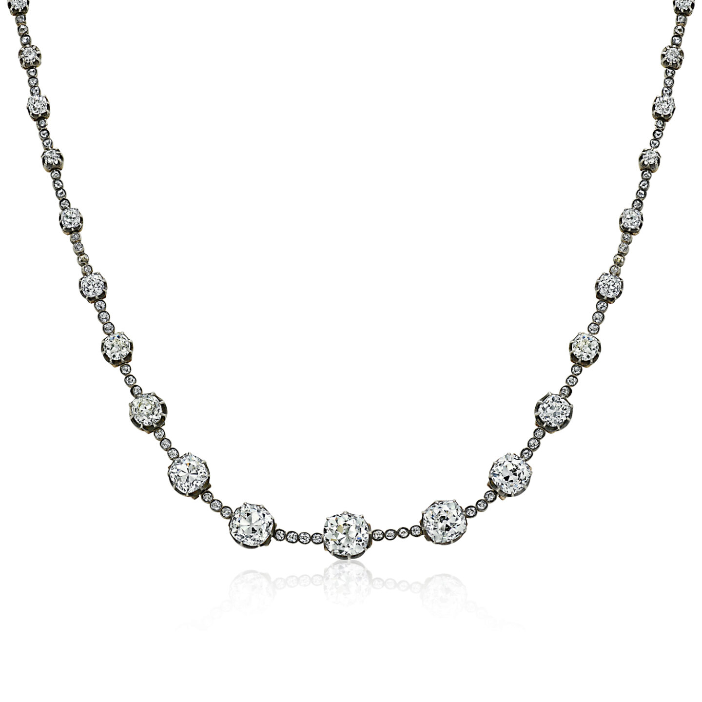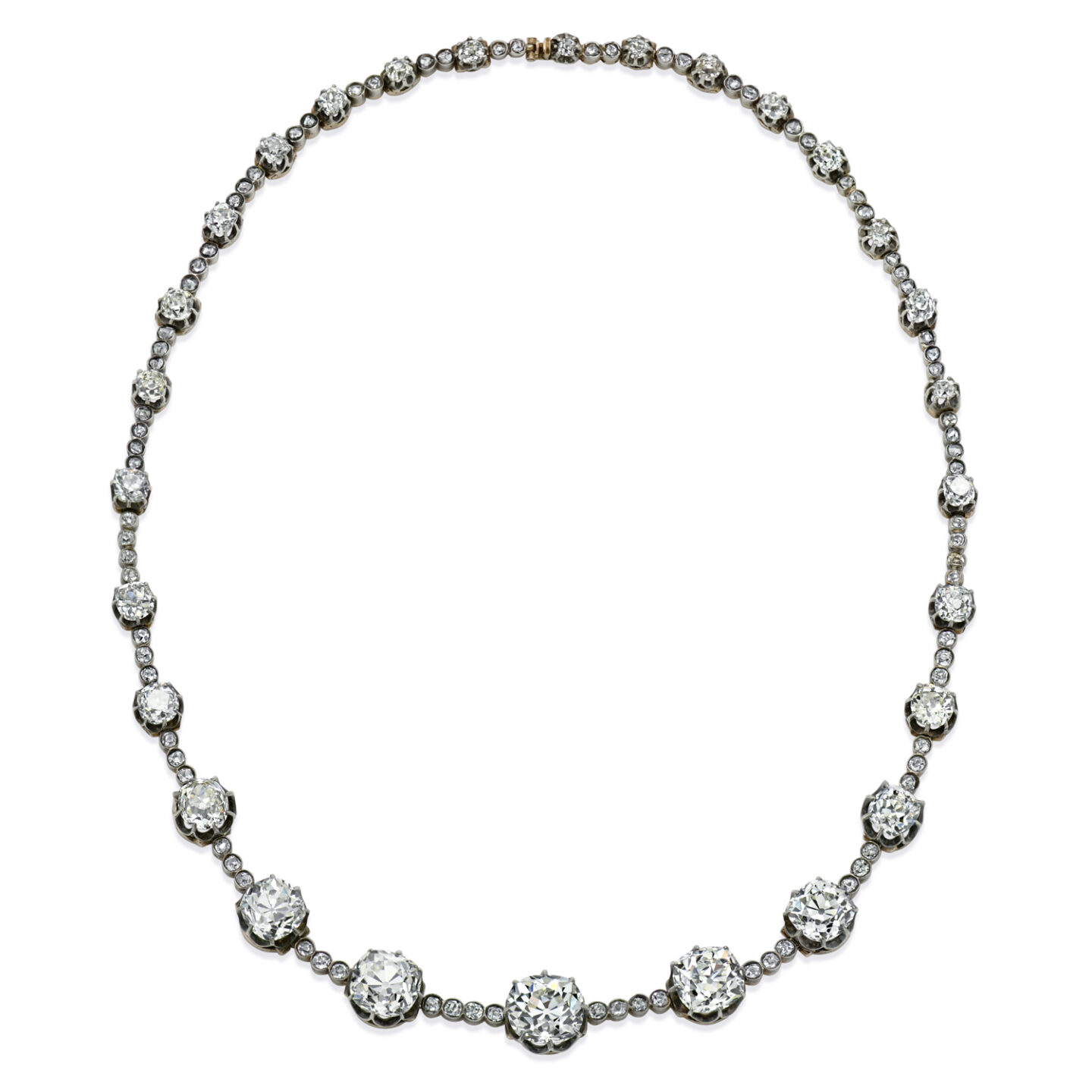 This Victorian diamond rivière features 88 graduated old mine and rose cut diamonds set in silver-topped gold.