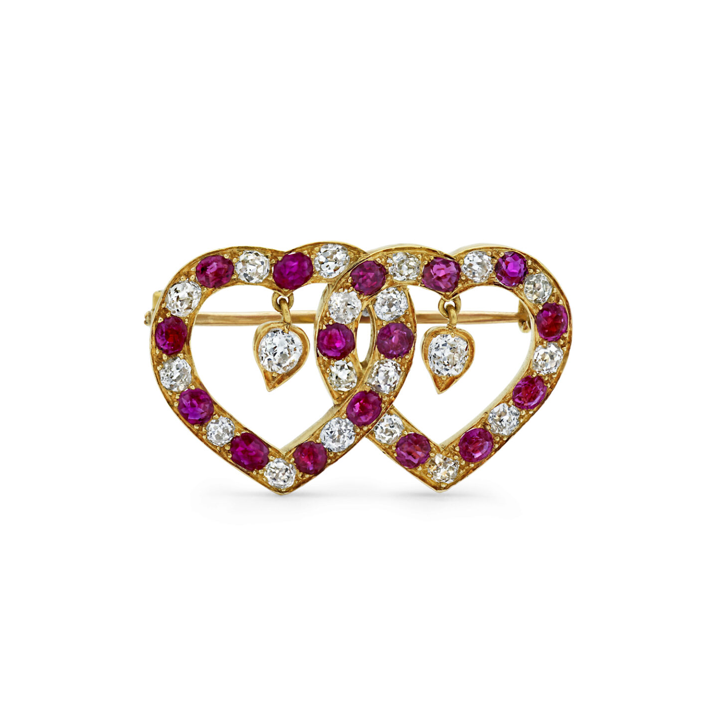 • Antique Ruby and Diamond Double-Heart Brooch | Fred Leighton